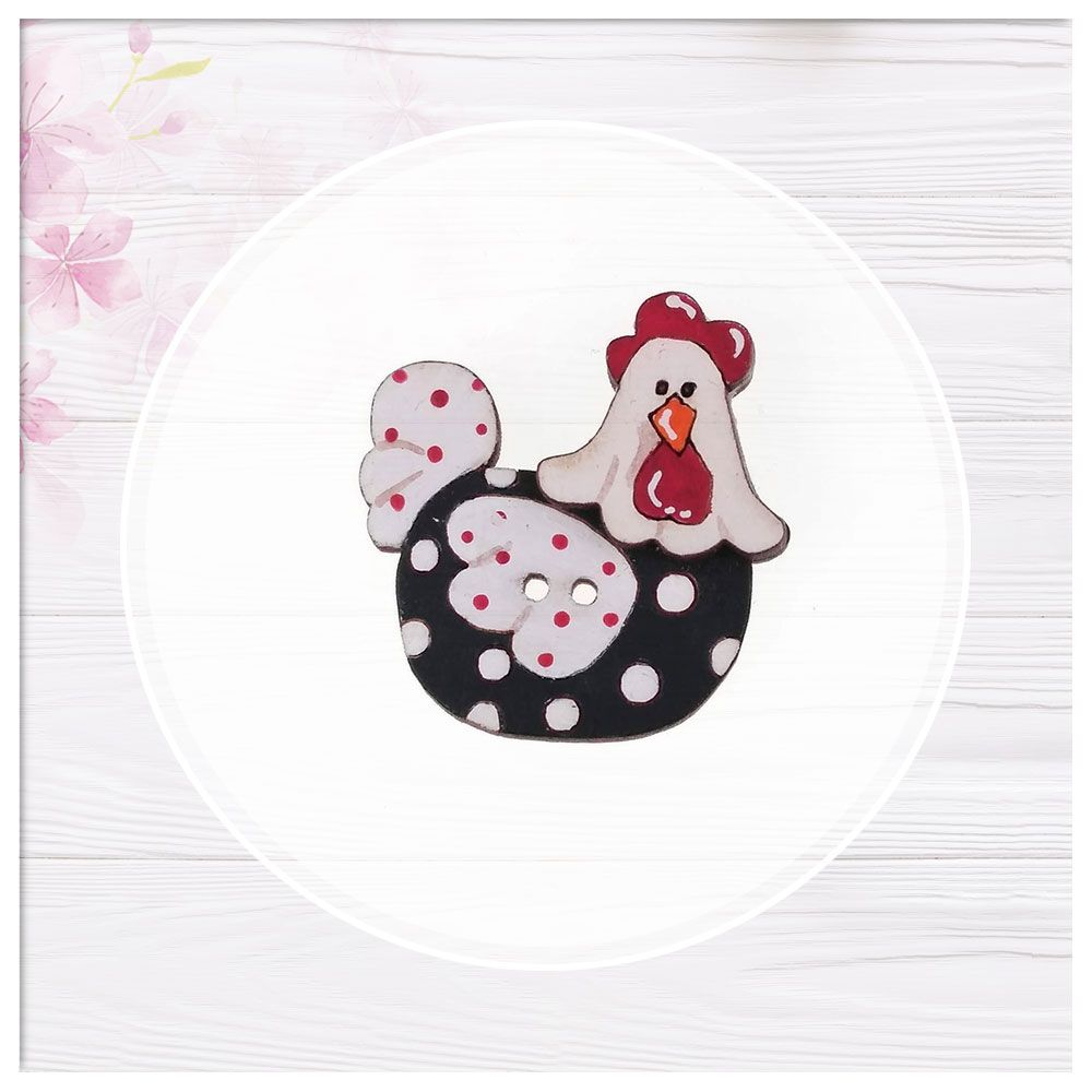 Botón con forma de amapola con los pétalos cerrados, realizado en madera y pintado a mano.