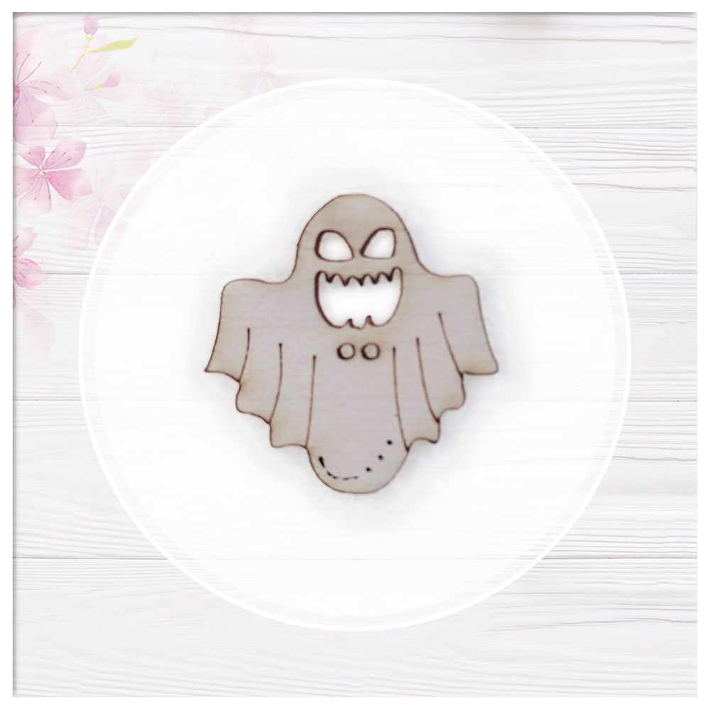 Botón con forma de fantasma realizado en madera y pintado a mano