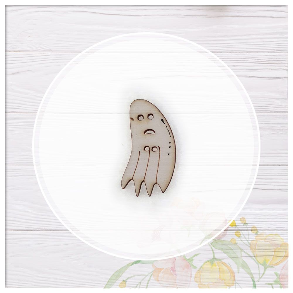 Botón con forma de fantasma realizado en madera y pintado a mano