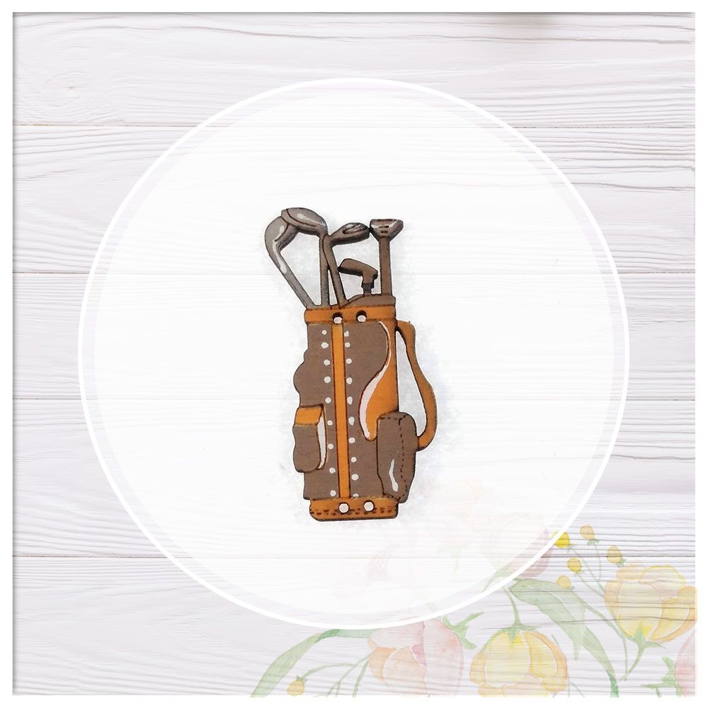 Botón con forma de saco para los palos de golf, hecho en madera y pintado a mano.